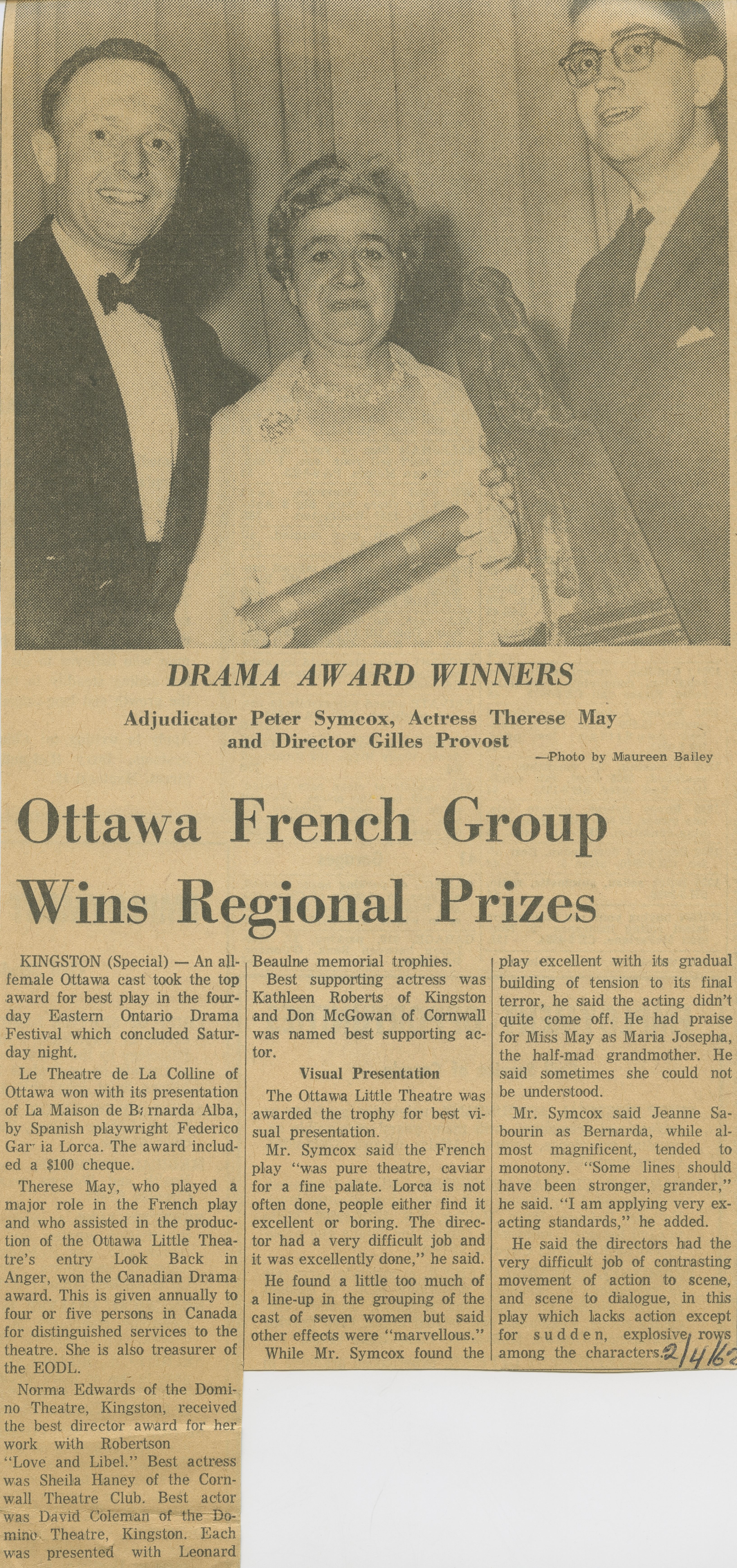 « Ottawa French Group Wins Regional Prizes », The Ottawa Citizen, p.38