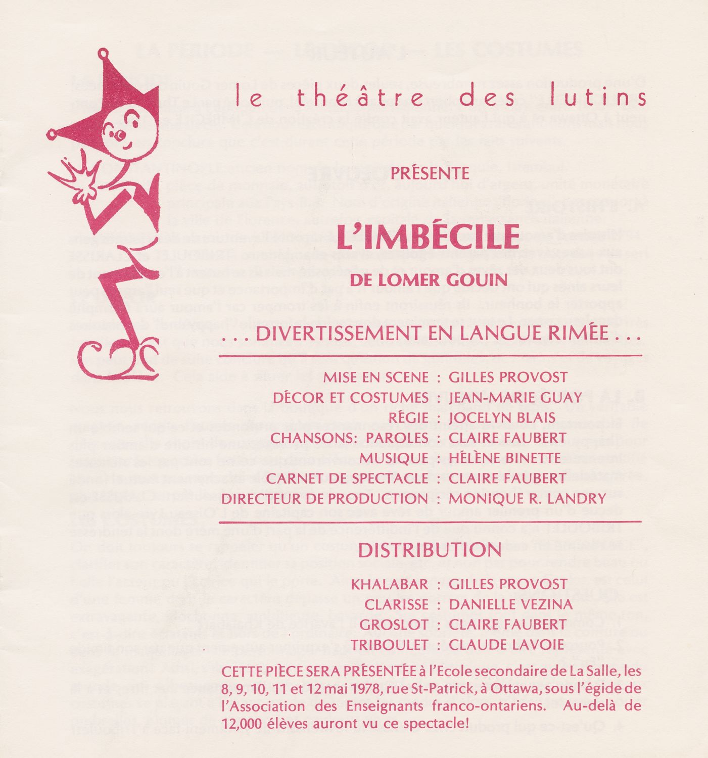 Cahier pédagogique de la pièce L'imbécile de Lomer Gouin
