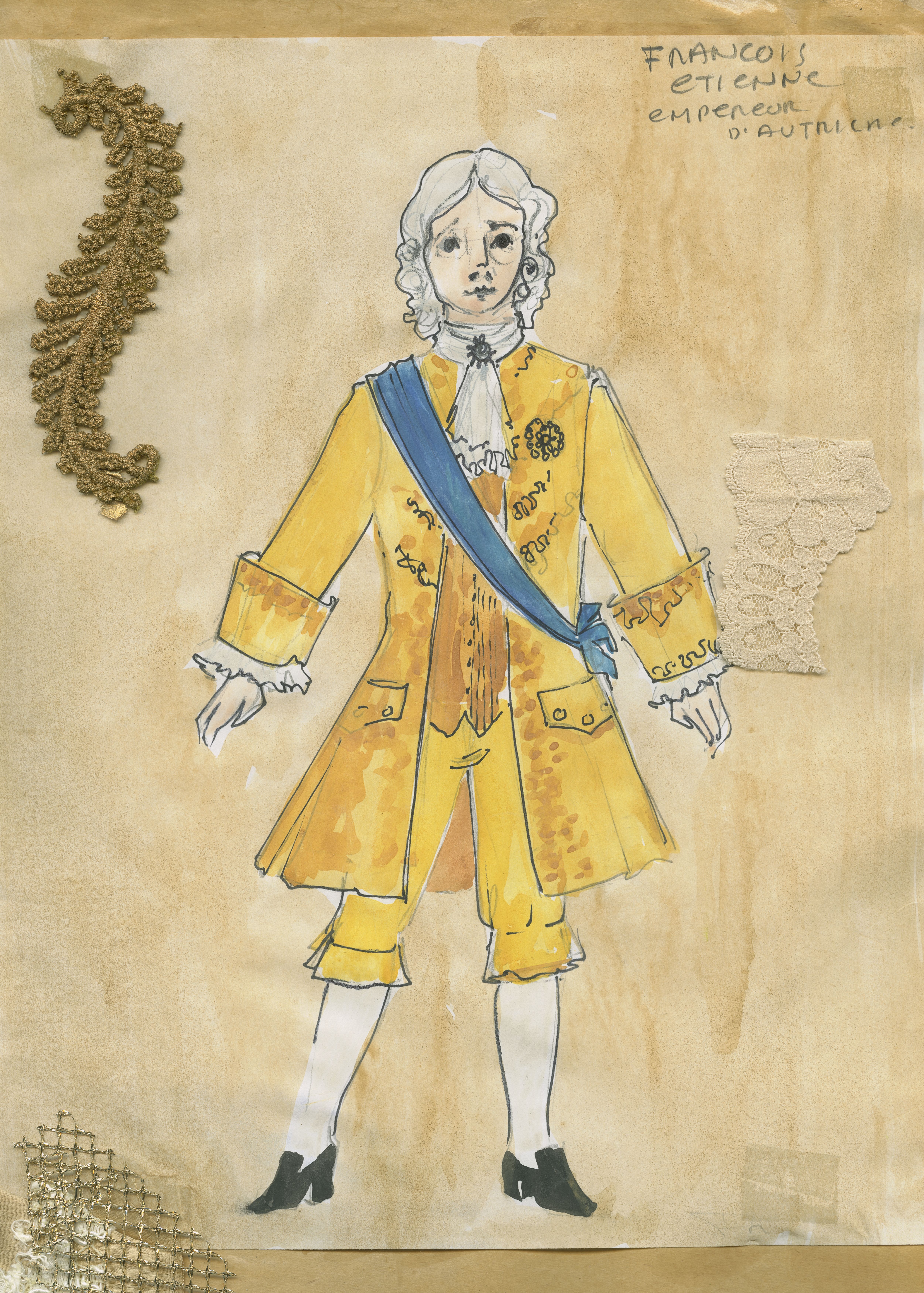 Croquis du costume de François Étienne, empereur d'Autriche dans Petit Mozart deviendra grand d'Anne-Marie Riel, Gilles Lalonde (concepteur)