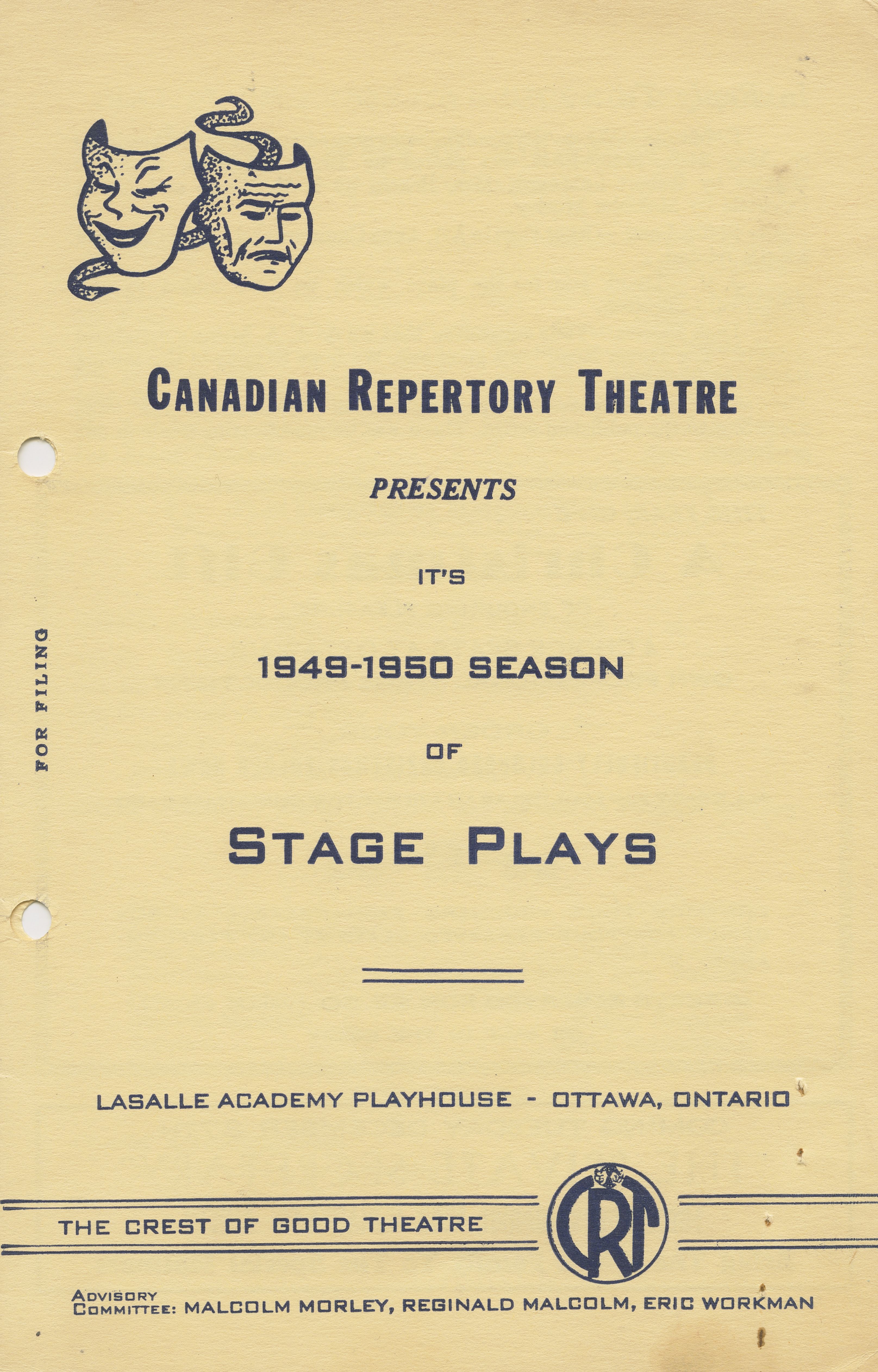Programmation du Canadian Repertory Theatre pour la saison 1949-1950