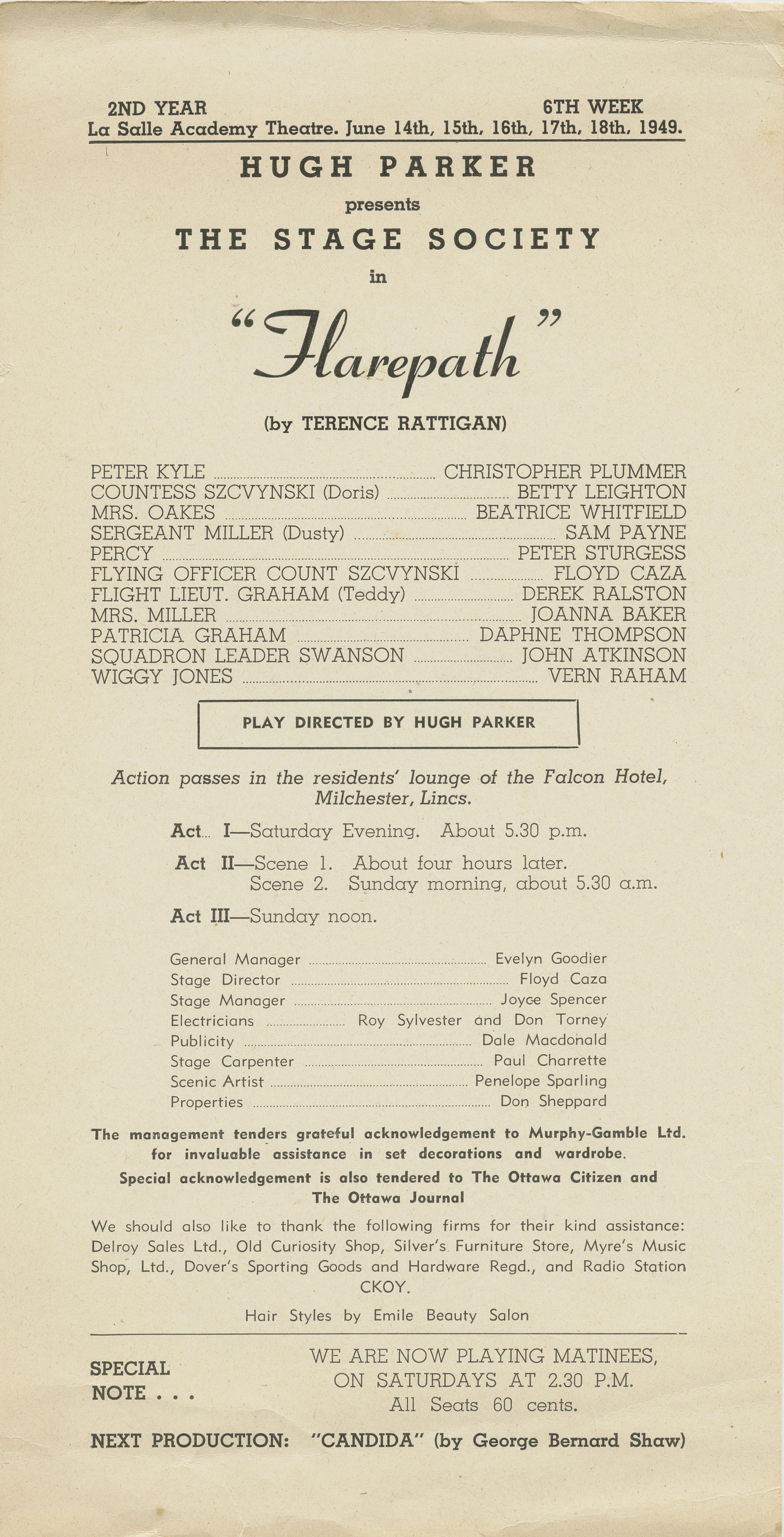 Programme de la pièce Flarepath de Terence Rattigan