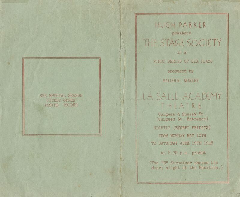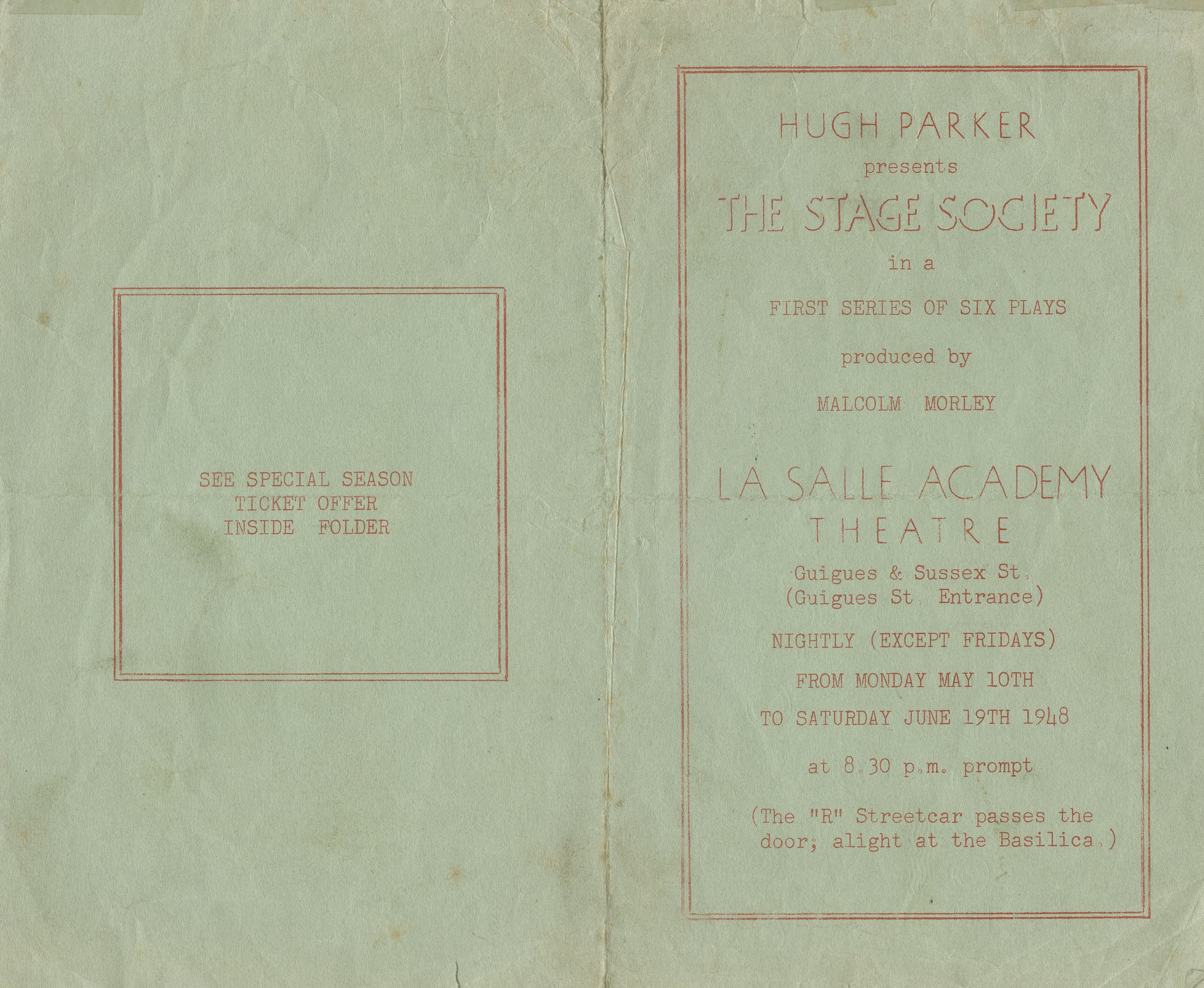 Programmation de la saison mai/juin 1948 présentée par The Stage Society, première série de 6 pièces mises en scène par Malcolm Morley