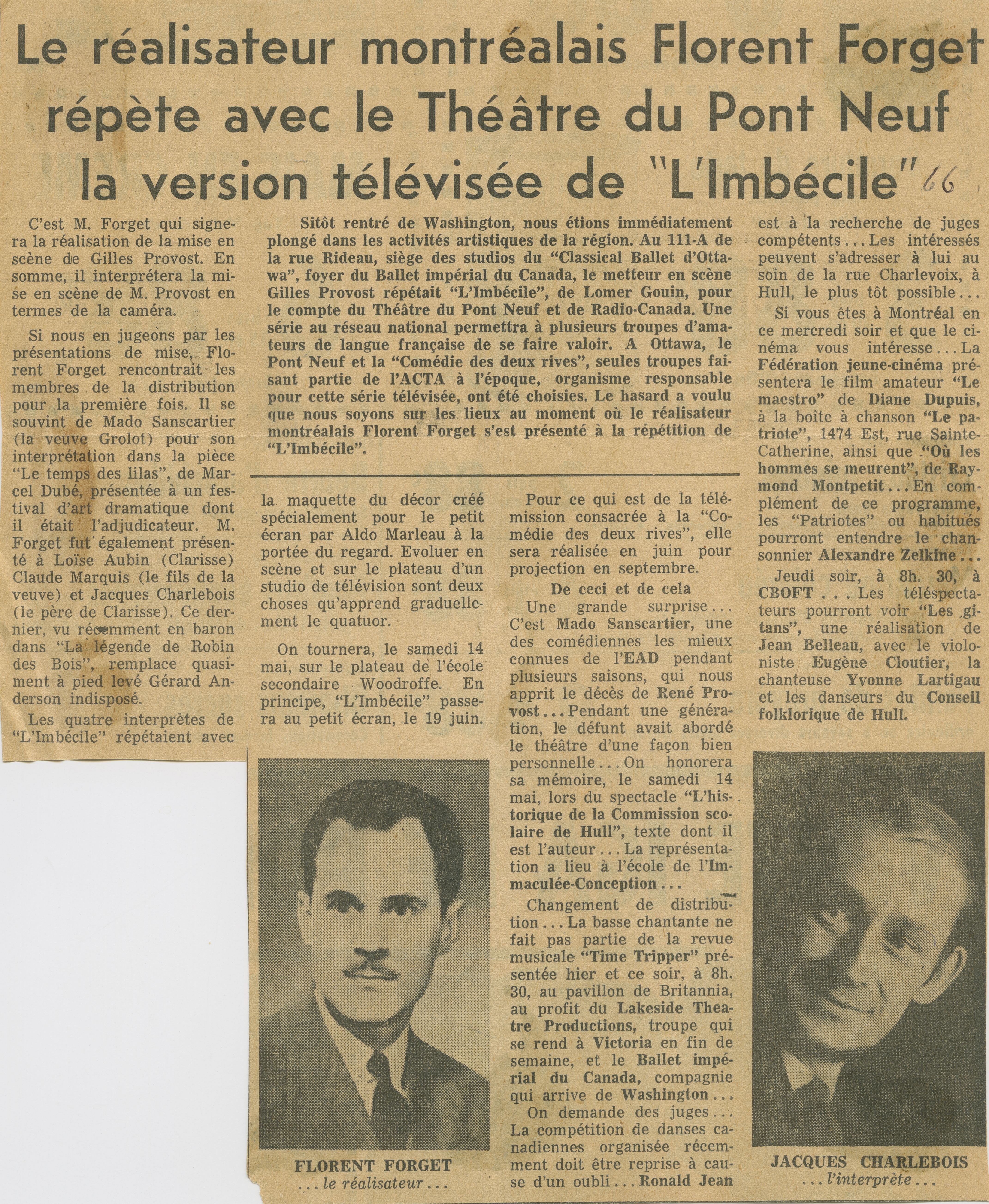 « Le réalisateur montréalais Florent Forget répète avec le Théâtre du Pont Neuf la version télévisée de L'Imbécile »