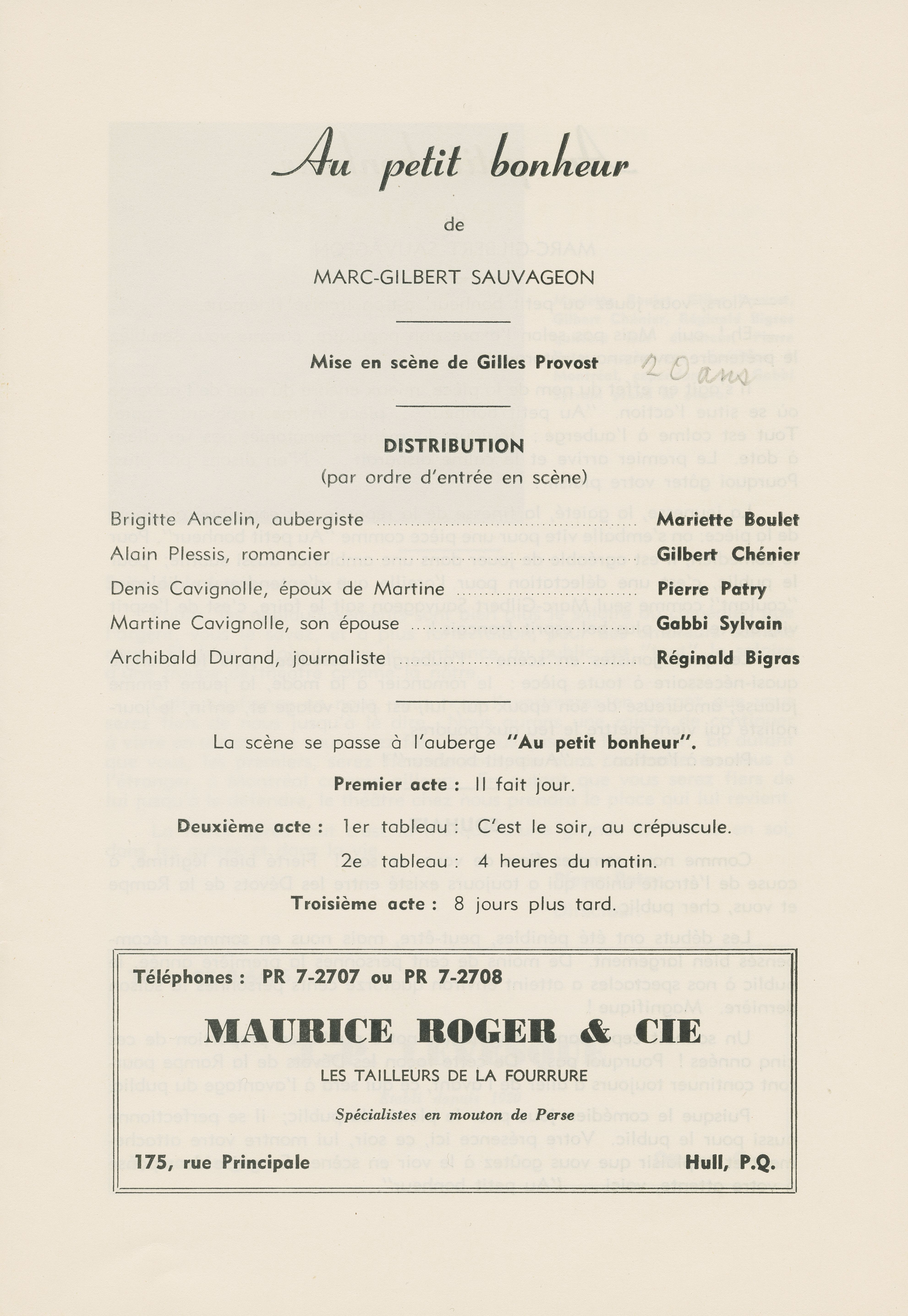 Distribution de la pièce Au petit bonheur de Marc-Gilbert Sauvageon, mise en scène par Gilles Provost