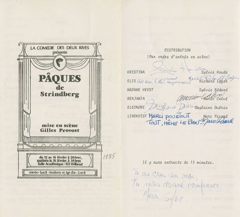 Programme de la pièce Pâques de Strindberg, mise en scène par Gilles Provost