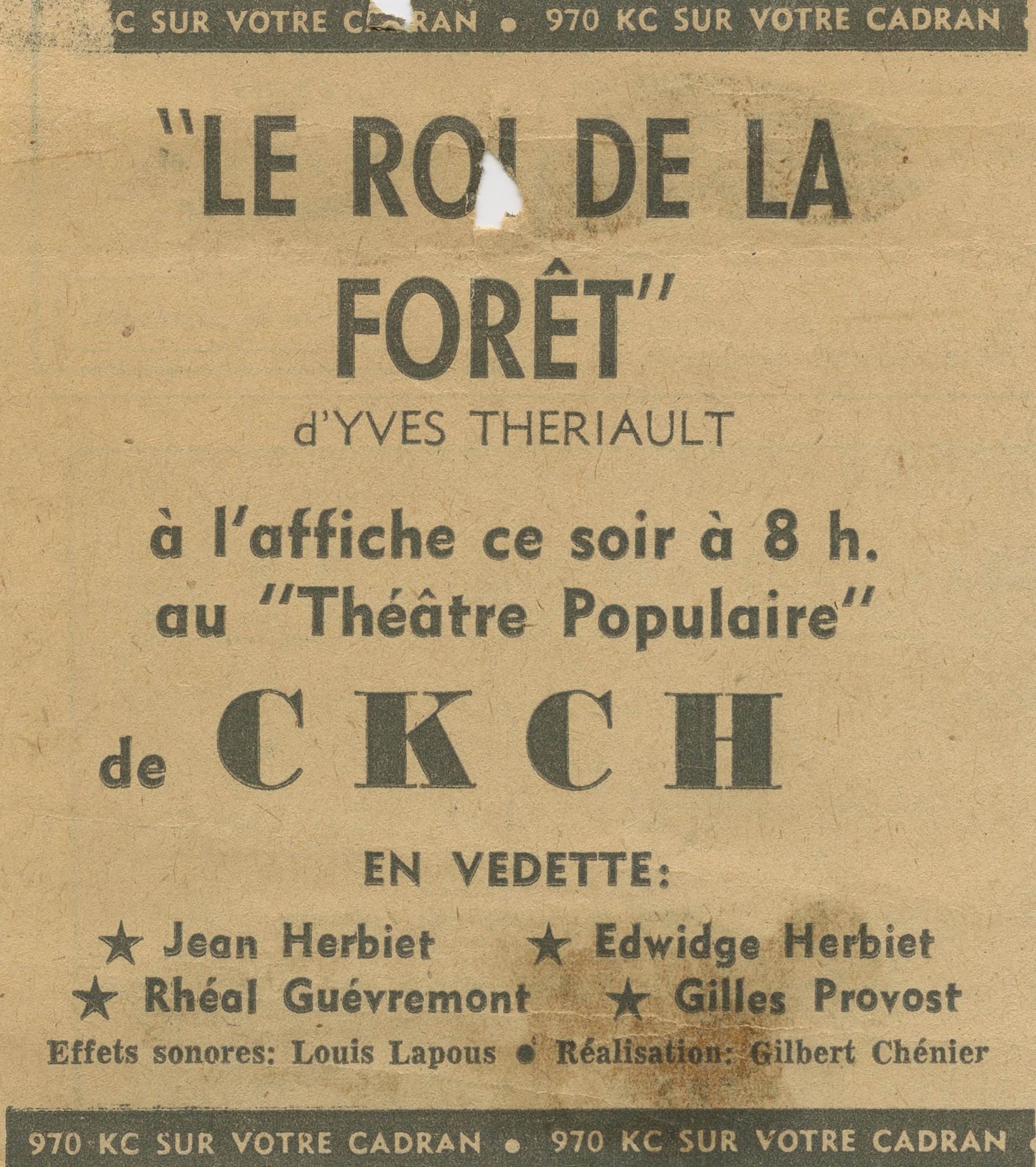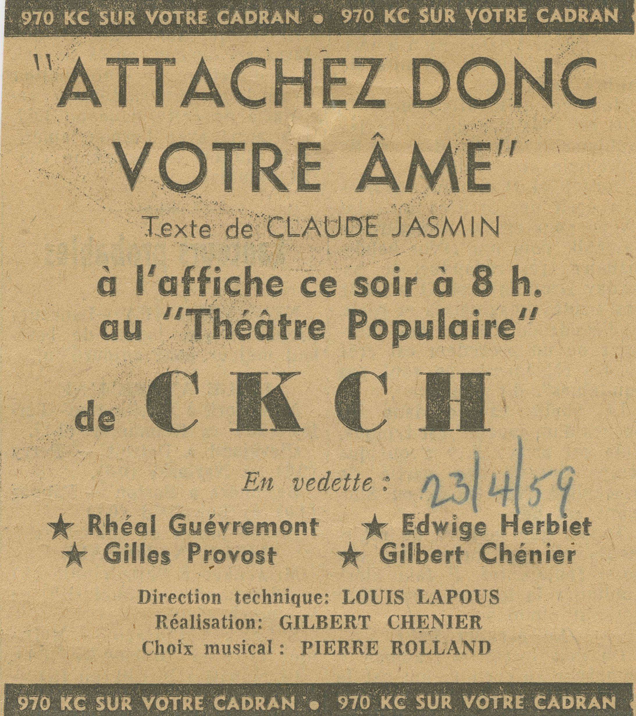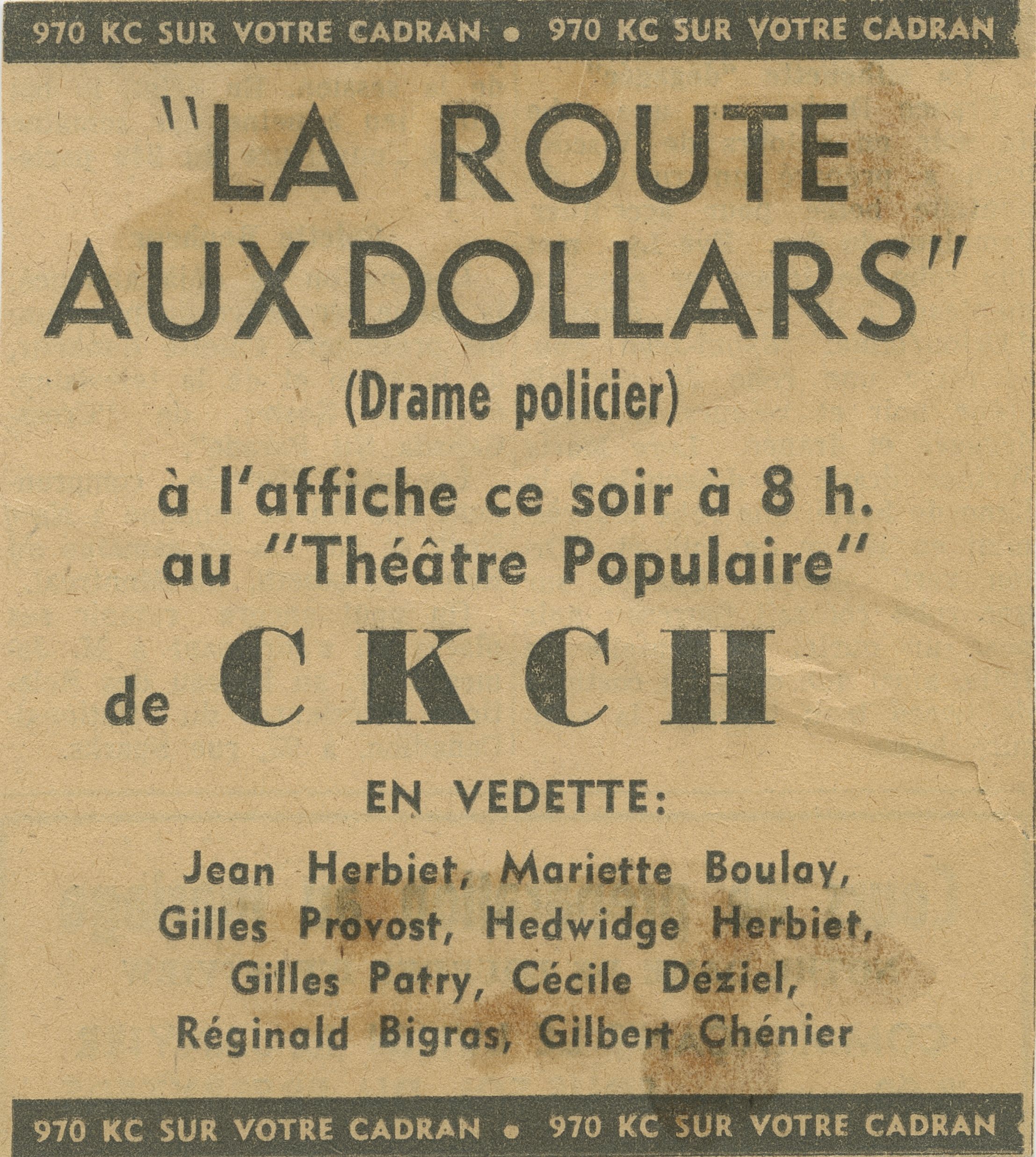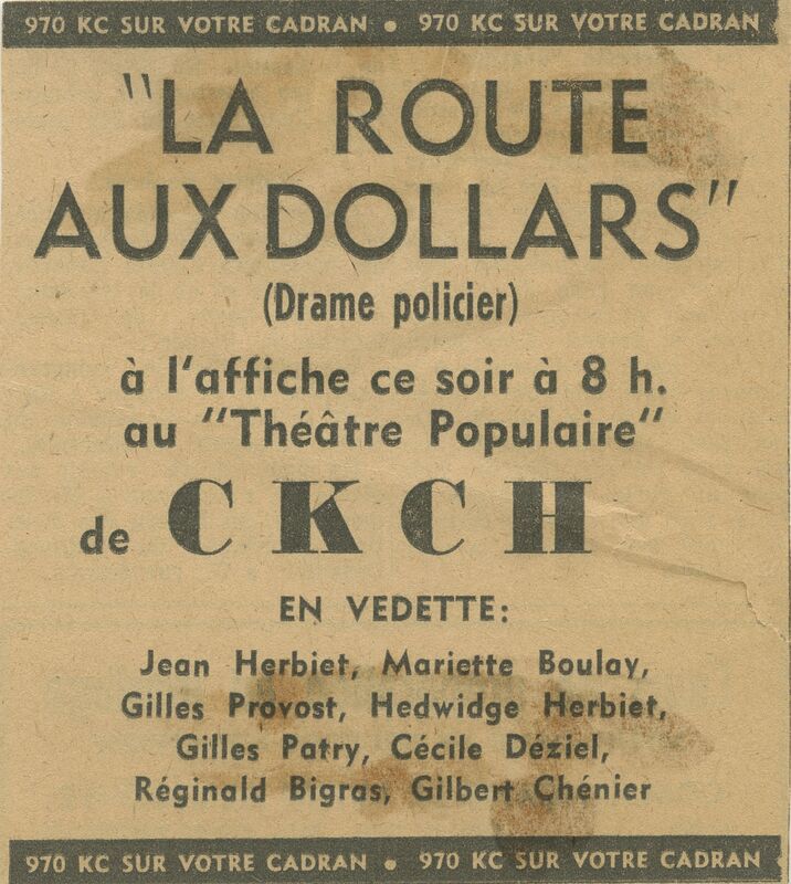 Publicités parues dans le journal Le Droit pour le Théâtre populaire de CKCH