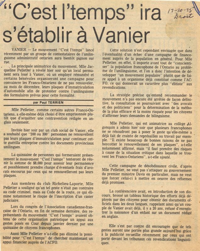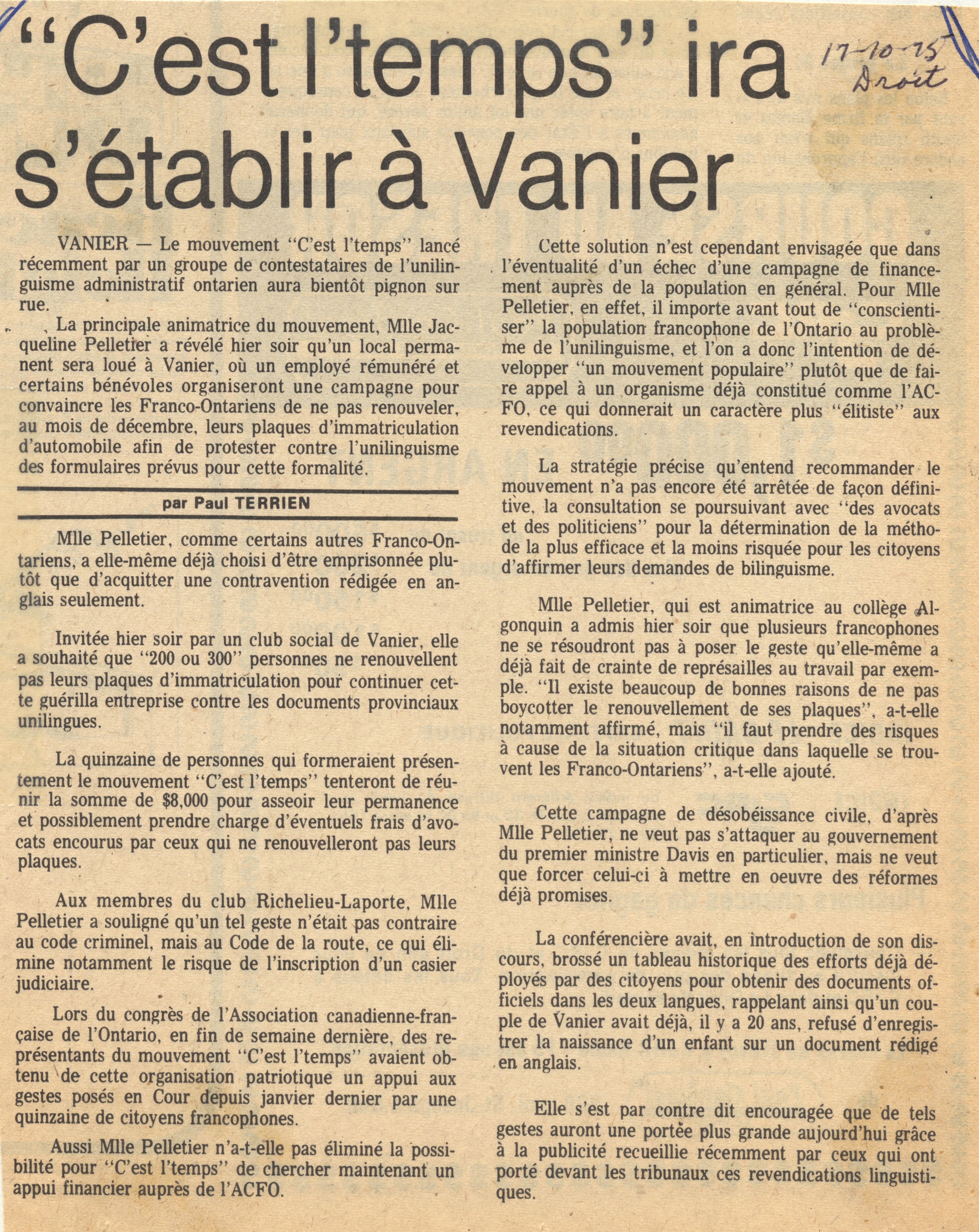 "C'est l'temps" ira s'établir à Vanier