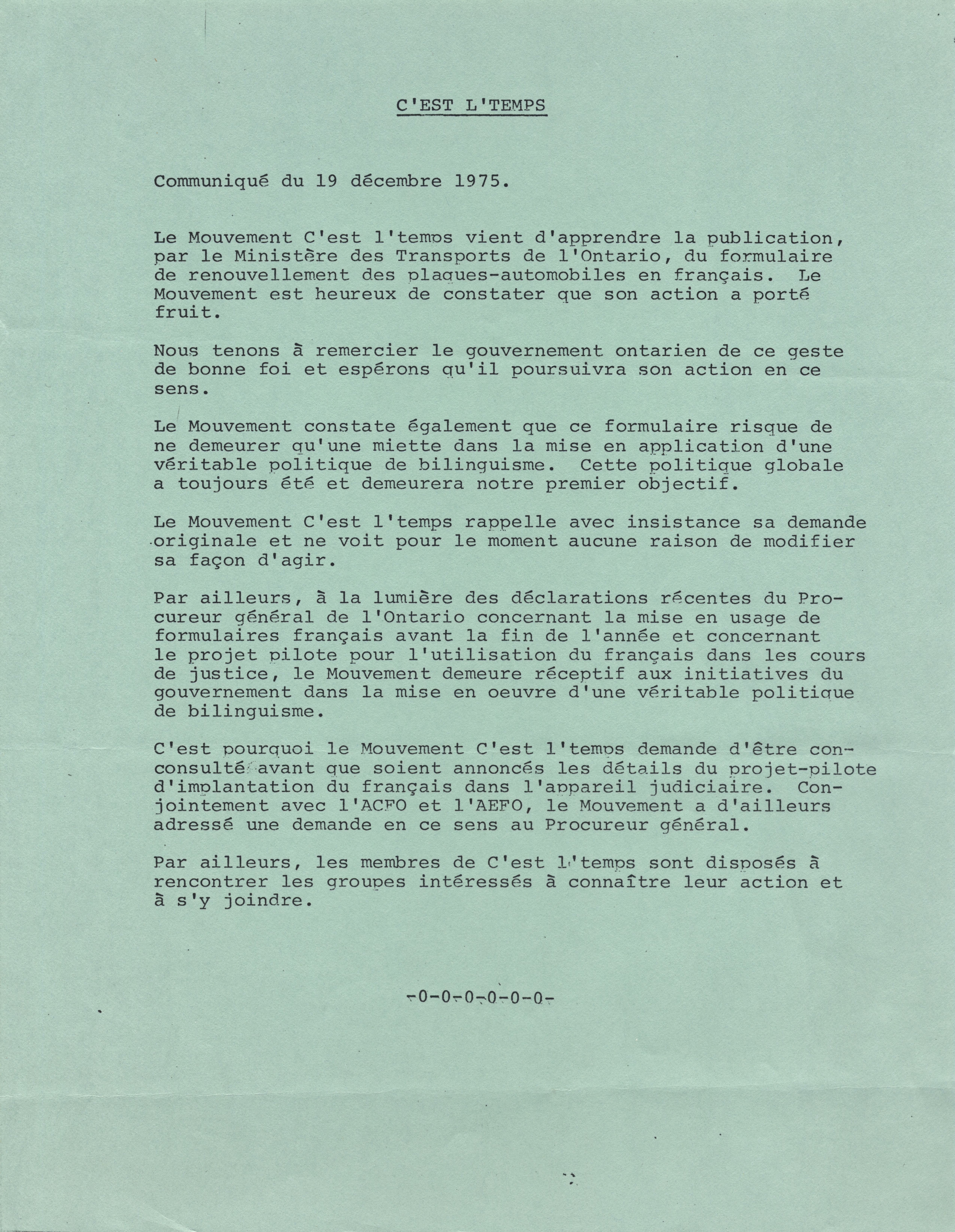 Communiqué du 19 décembre 1975