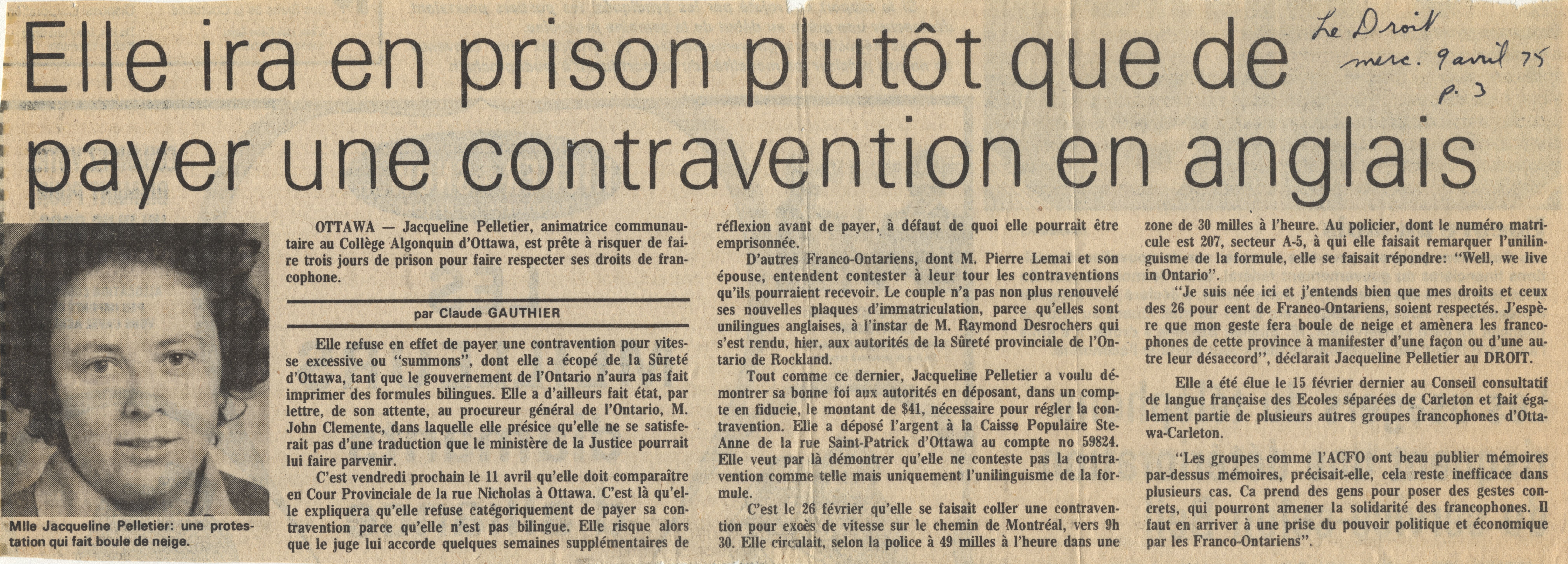 Elle ira en prison plutôt que de payer une contravention en anglais