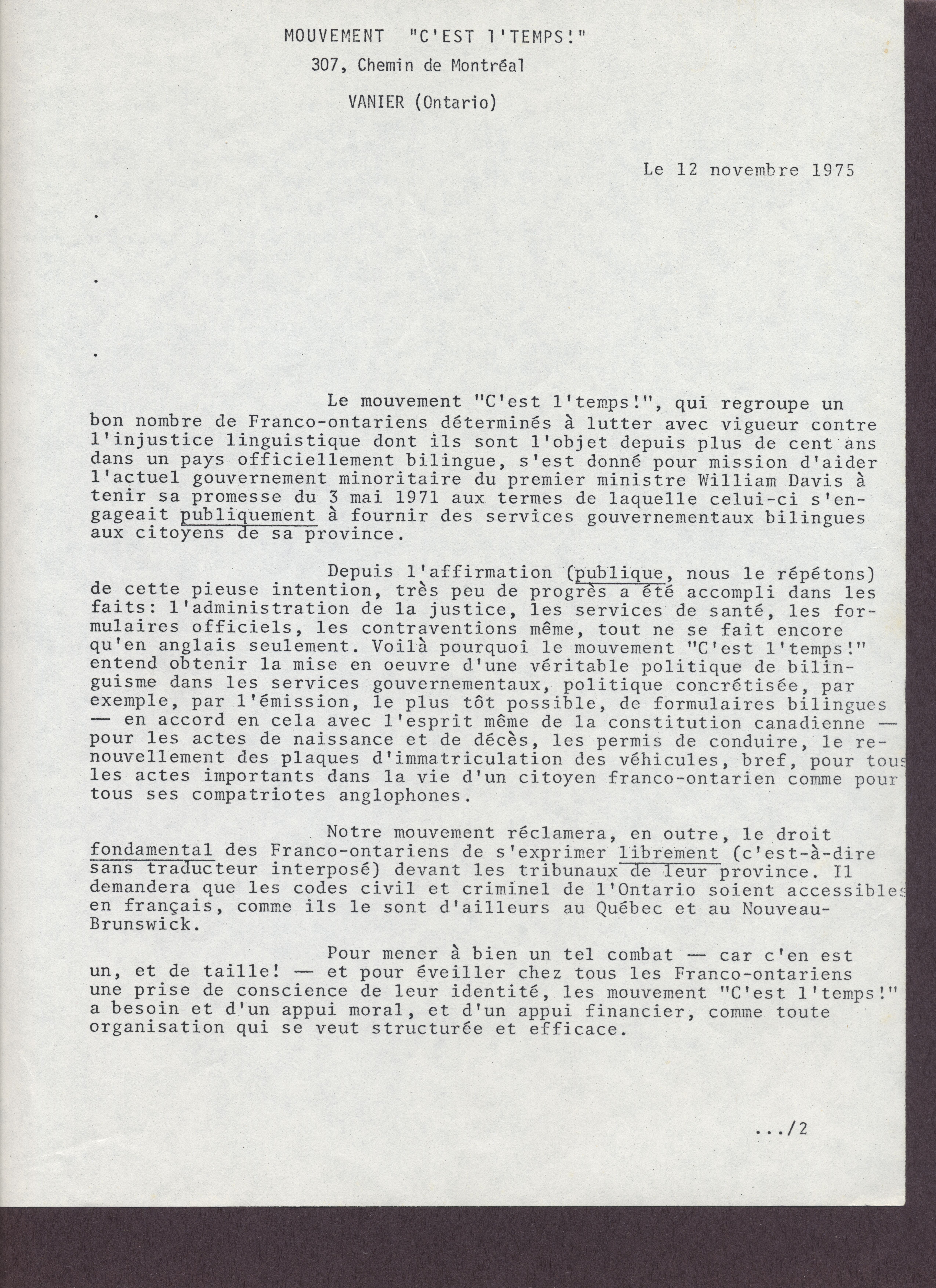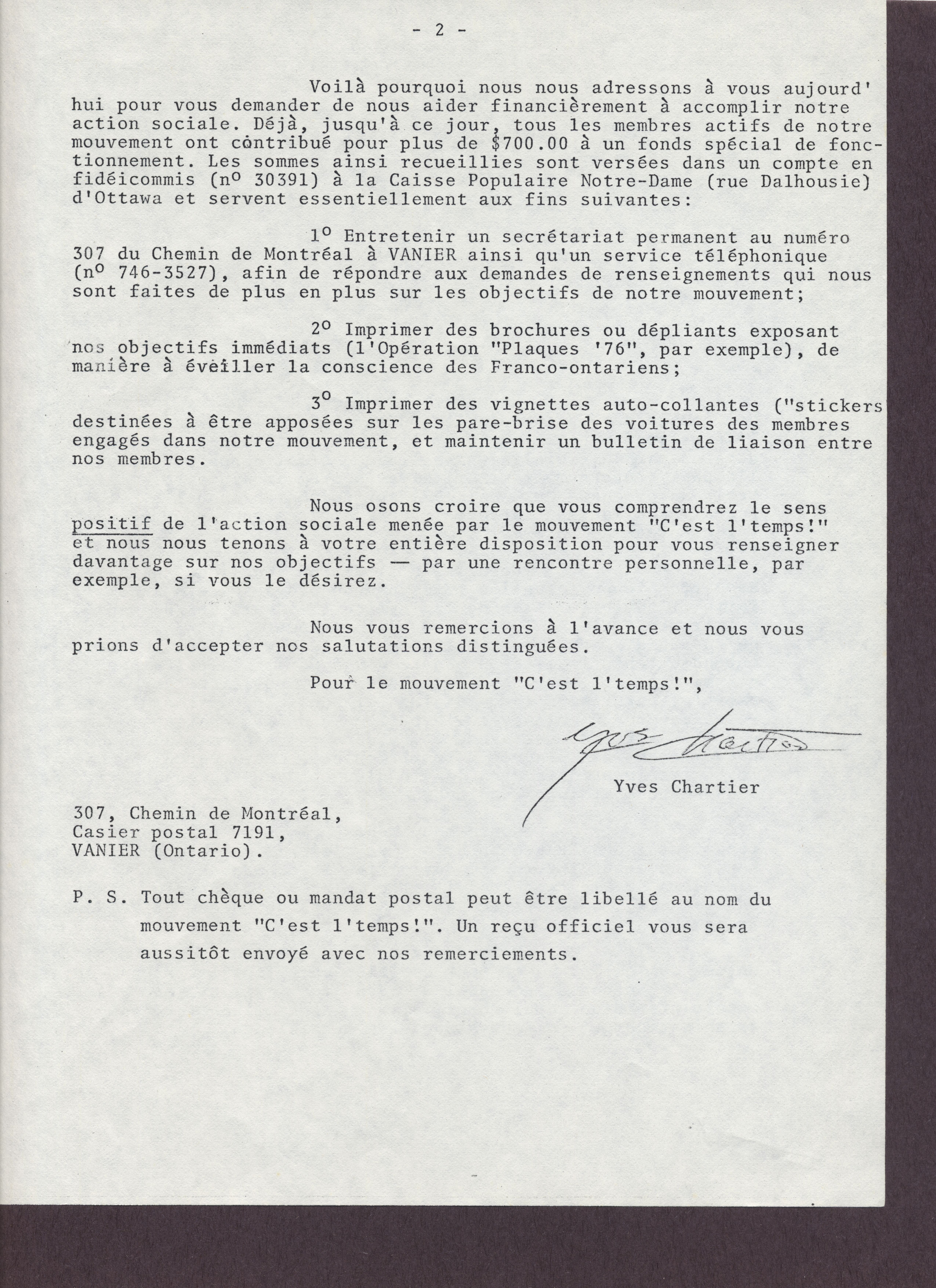 Adresse de Yves Chartier